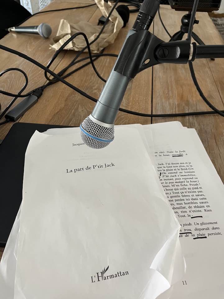 19 JUIN 2025 / Premier jour de répétition de La part de P’tit Jack version radiophonique mais pas que. Avec Renaud Hézèques dans le rôle de l’enfant P’tit Jack et Jacques Descorde dans le rôle de l’Ogre. Spectacle tout terrain techniquement autonome. Dès octobre nous jouerons partout. Médiathèques, foyer de théâtre, dans les collèges et lycées, chez l’habitant…